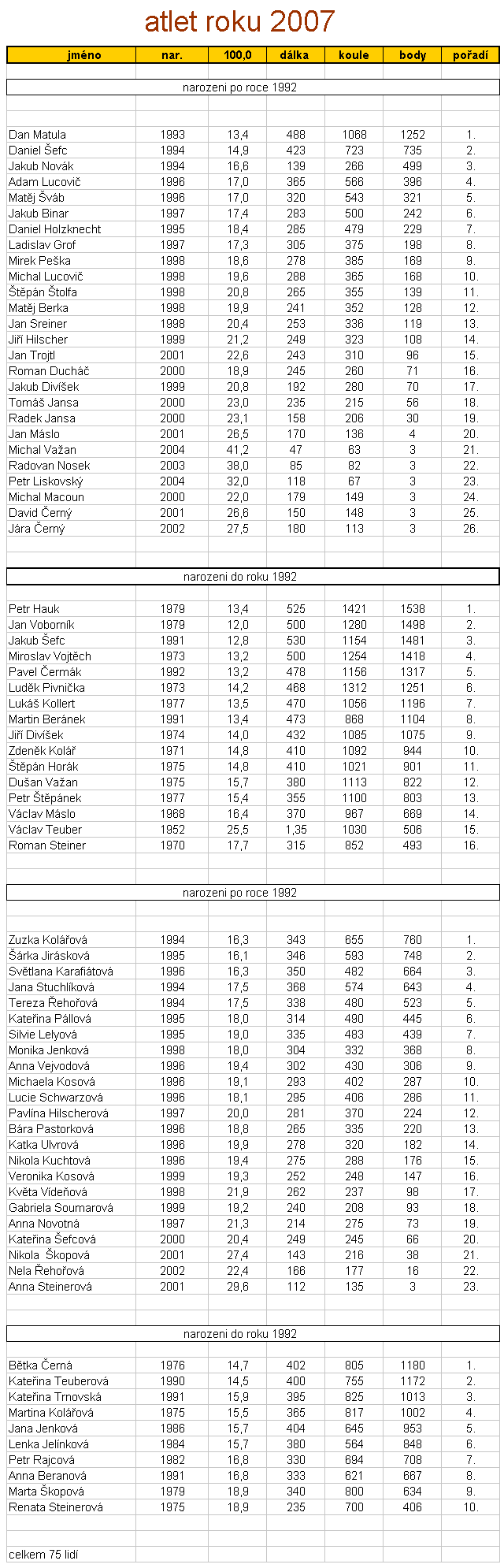 nejlepší výkony v kategorii mužů:Petr Hauk1538 bodů