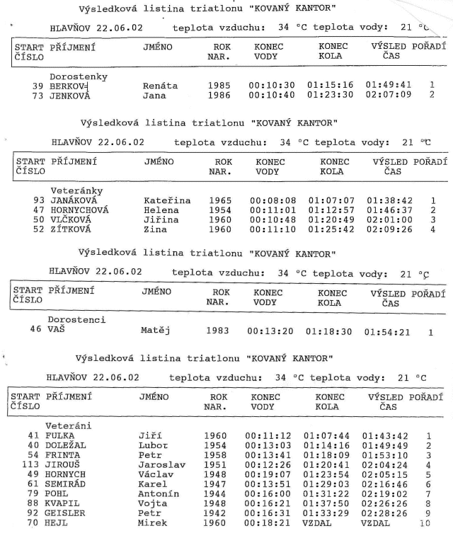 | 2. Michal Čihák | 1:51 - vítěz v kategorii Kovaný kantor pro rok 2002 |
