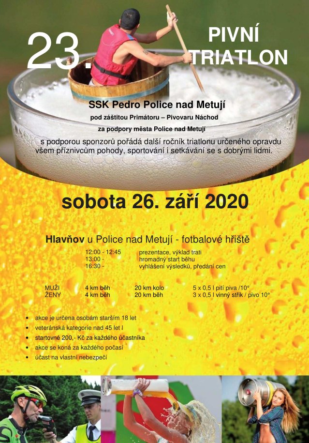 Chtěl bych poděkovat především panu Petru Jansovi za předešlých 22 ročníků, za vymyšlení této akce, za přenechání know-how a pomoc při organizaci letošního ročníku! Letos poprvé se Pivní triatlon uskutečnil v režii přátel týmu Pítrsbikes.